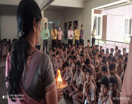 Content : Our Students came together to celebrate the vibrant festival of Navarathri, a time that honors the triumph of good over evil and celebrates knowledge, music, and culture. A Golu arrangement with dolls was displayed, and the children eagerly participated in offering flowers, singing simple bhajans. The rhythmic beats of music and cheerful voices filled the atmosphere with joy.