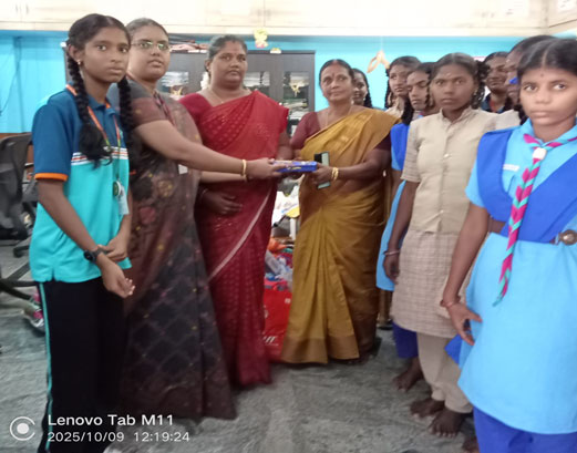 🤝🏻 The donations were handed over by Ms. Rahila Banu, the Assistant Academic Coordinator, to Ms . P. Maheshwari, Correspondent of Vallalar Arivalayam.