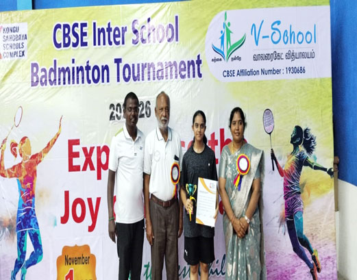 Four students participated in the KSSC Inter-School Badminton Tournament, organized by Valaraigate Vidyalaya, Thiruchengode on 1st November 2025.