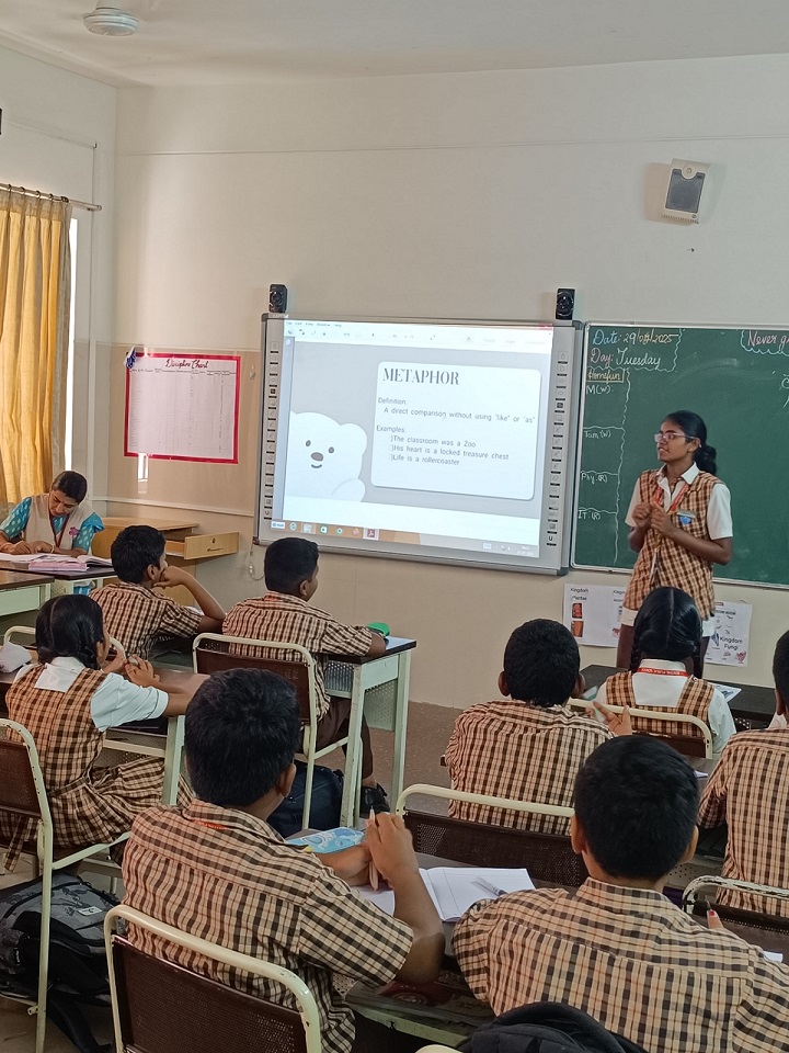 Activity 1 - Awareness Programme - PEER TEACHING SESSION on 29.07.2025 (Tuesday) - The event emphasized the usage of Poetic Devices in literature through various engaging activities and creative presentations. The creative presentation of the students and the encouraging words inspired the young buds to believe in themselves and use the opportunities whenever it comes on their way.