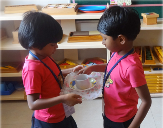Developing the social skills of grace and courtesy is a key component of the Montessori curriculum. In a Montessori environment, children learn how to interact appropriately with each other and with adults through dialogue. Some of these interactions include greeting and hosting guests into the classroom, preparing and sharing snacks with peers, and exercising appropriate mealtime behavior. One of the main values that are taught in a Montessori classroom is respect. By teaching respect for their peers, materials, and themselves, Montessori educators plant a seed of compassion and empathy in the children.