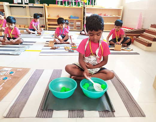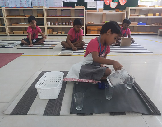 These are Exercises for the child to learn to do living activities in a purposeful way. The Exercises of Practical Life are formative activities, a work of adaptation to the environment. Such adaptation to the environment and efficient functioning therein is the very essence of useful education.