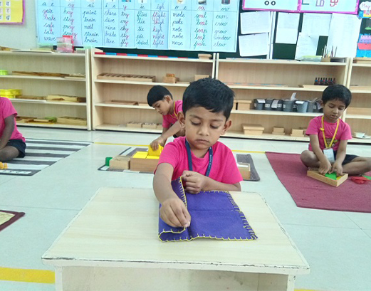 These activities provide the means for children to become physically independent. Activities in this area may include learning to wash one’s hands or learning to put on one’s clothing.