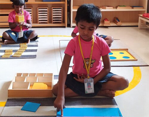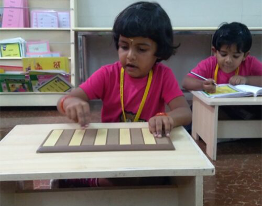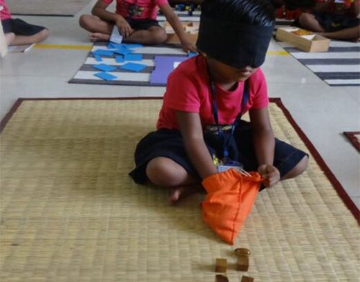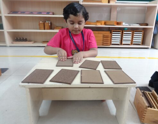 Through tactile lessons, a child learns to perceive the world through touch, developing the ability to discriminate between coarse and fine.