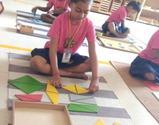 Geometric lessons help develop the child’s visual discrimination in shape and form. Additionally, a child develops the ability to observe progression from concrete to more abstract forms, all while the child learns the various figures. Indirectly, these lessons prepare the child for writing.